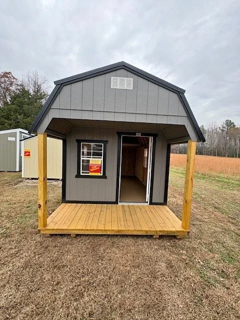 This 12x28 has 4 3x3 screened windows, smooth flooring, and the CENTER PORCH is calling for your rocking chairs. Think of the possibilities for this awesome space on your site.